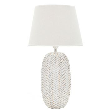Lampa de masa Cassy, Mauro Ferretti, 1 x E27, 40W, 25x40.5 cm, ceramica/fier/textil, alb/auriu